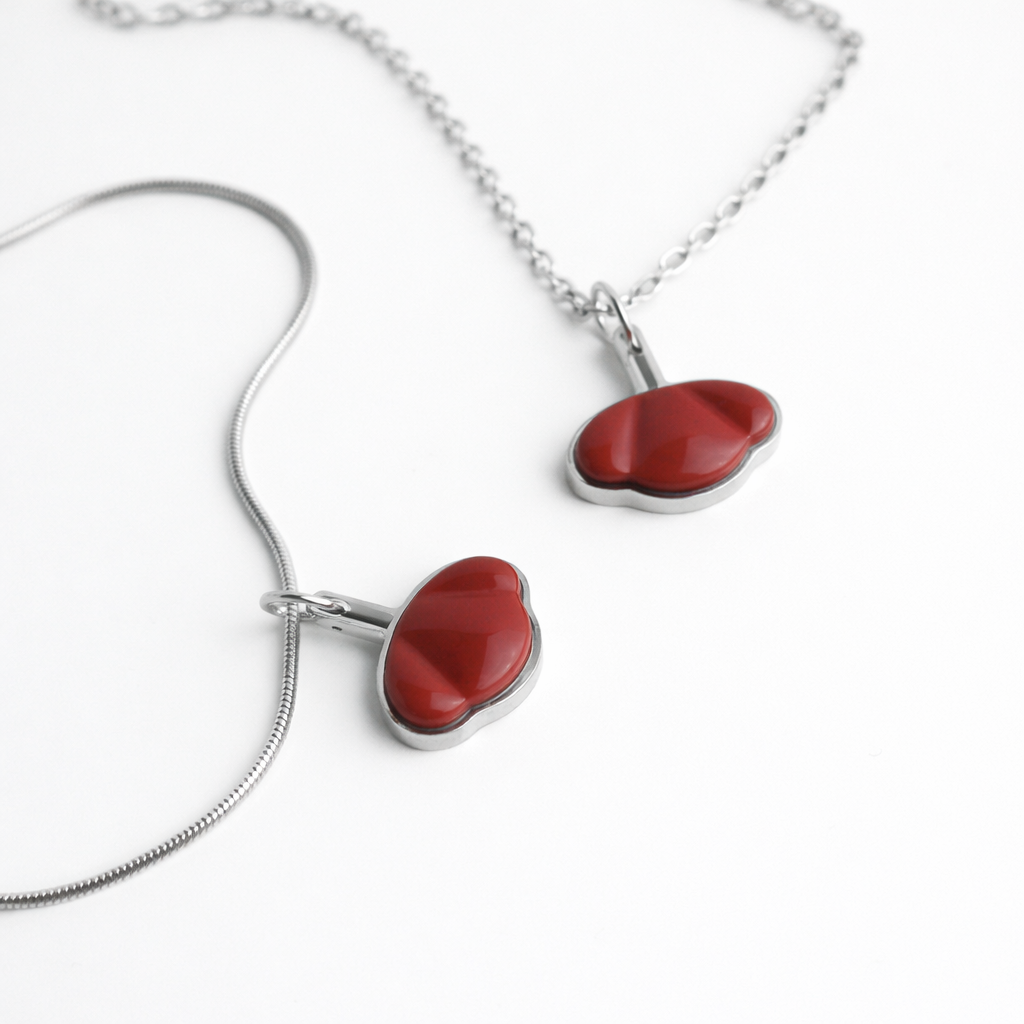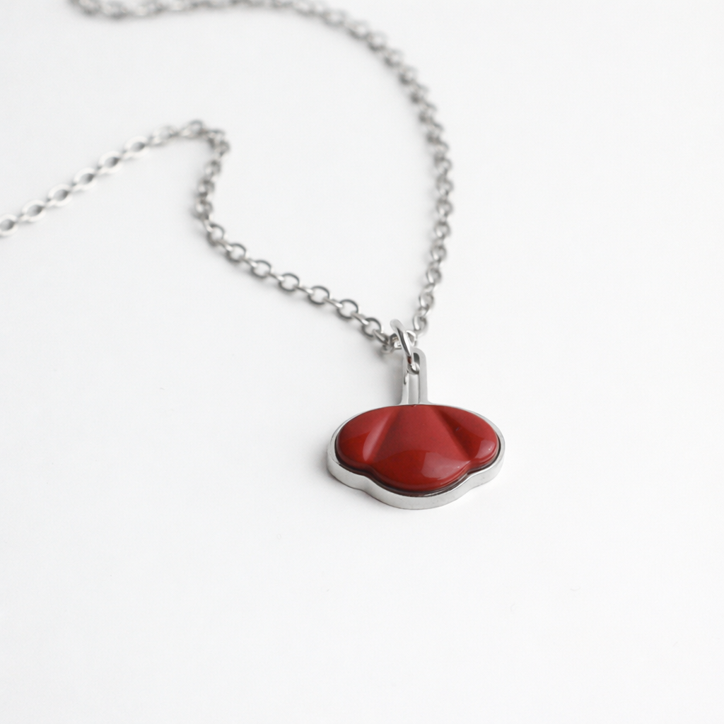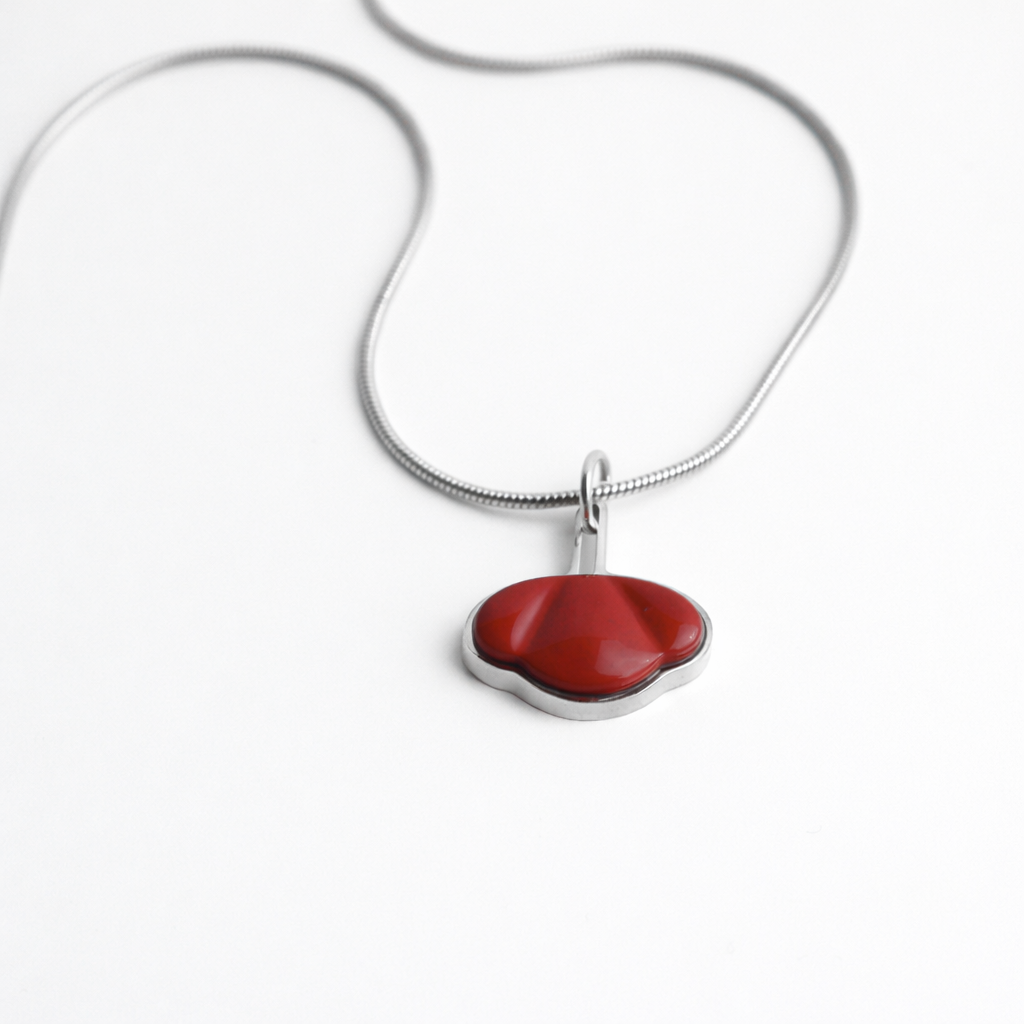 Deze hanger is gemaakt van echte rode jaspis (edelsteen), geslepen in de vorm van een klaproos. Met de hand geselecteerd en gezet in het zilver. Elke steen heeft zijn eigen natuurlijke tekening en is daardoor uniek.