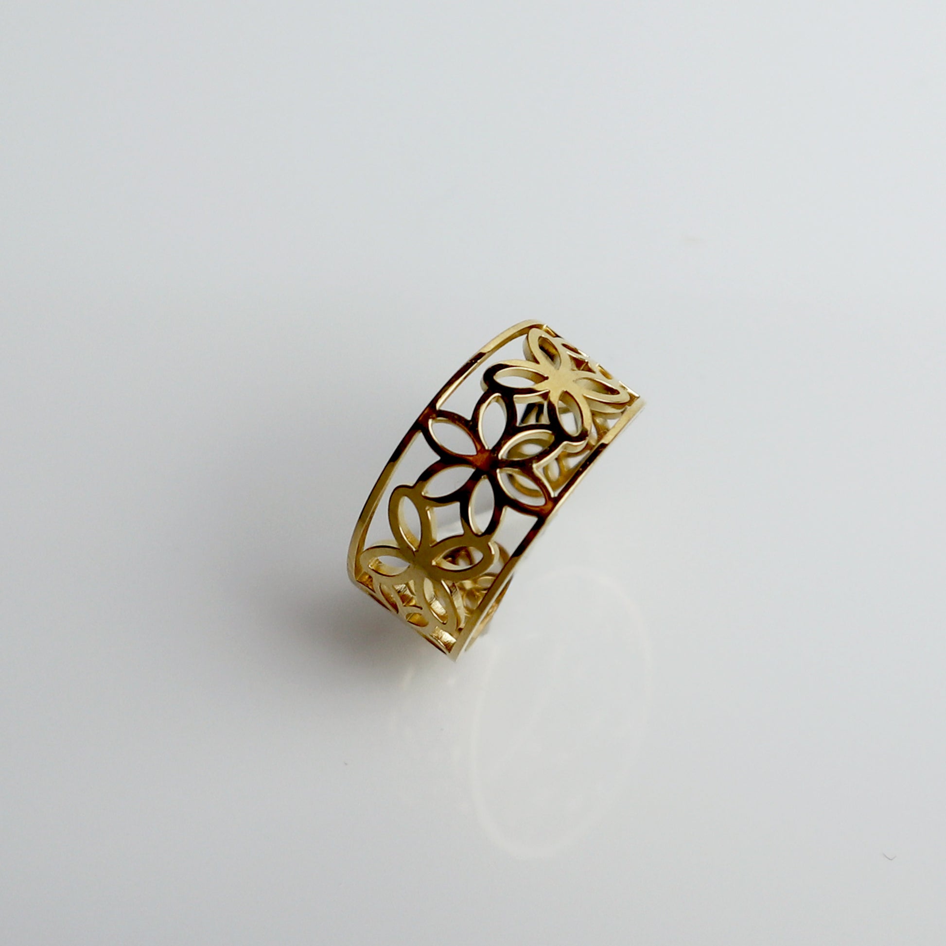 Deze verfijnde verstelbare ring is een prachtige toevoeging aan je sieradencollectie. Het sierlijke opengewerkte bloemmotief geeft de ring een elegante uitstraling, geïnspireerd door de natuur. Verkrijgbaar in zowel een zilverkleurige als goudkleurige afwerking, past deze ring moeiteloos bij elke outfit en gelegenheid. Dankzij het verstelbare ontwerp zit de ring altijd comfortabel, ongeacht de maat.