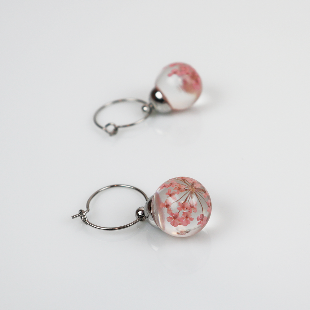 Elke set druppel oorbellen van Drupt is met de hand gemaakt en bevat echte bloemen, zoals rozenblaadjes, vergeet-me-nietjes, limonium of bloemen van de dilleplant. Zelfs kleine nepvlinders en mos worden op kunstzinnige wijze verwerkt in het transparante hars van onze druppelvormige oorbellen. Zo draag je altijd een stukje natuur met je mee – stijlvol en betekenisvol.