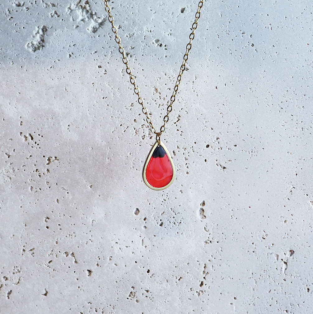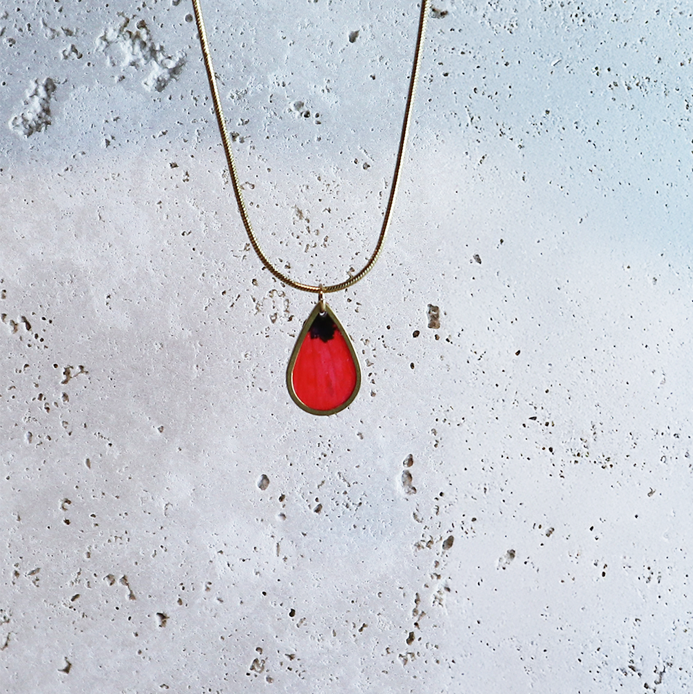 Het nadeel van bloemen geven is dat ze snel verwelken en je steeds nieuwe moet kopen. Deze Drupt-hanger is een origineel en duurzaam alternatief: de klaproos blijft voor altijd stralen om je hals.