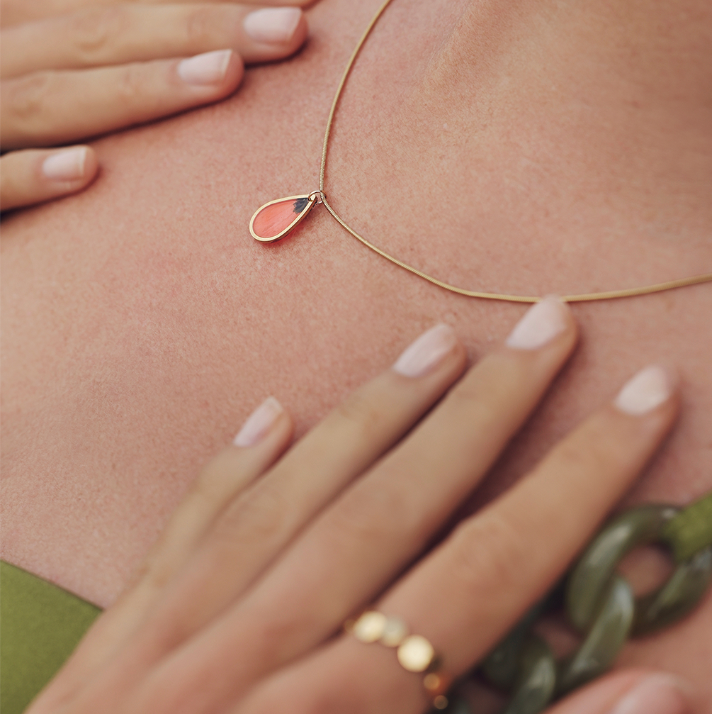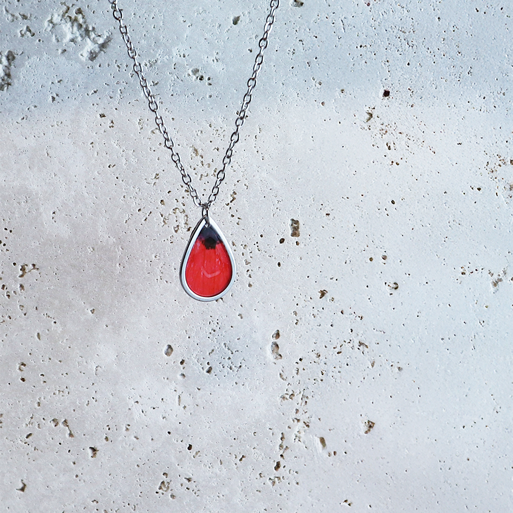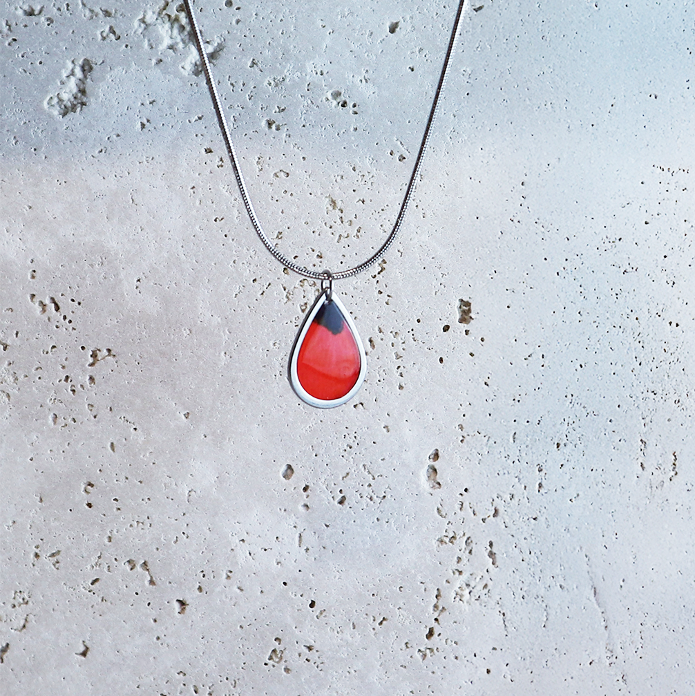 Het nadeel van bloemen geven is dat ze snel verwelken en je steeds nieuwe moet kopen. Deze Drupt-hanger is een origineel en duurzaam alternatief: de klaproos blijft voor altijd stralen om je hals.